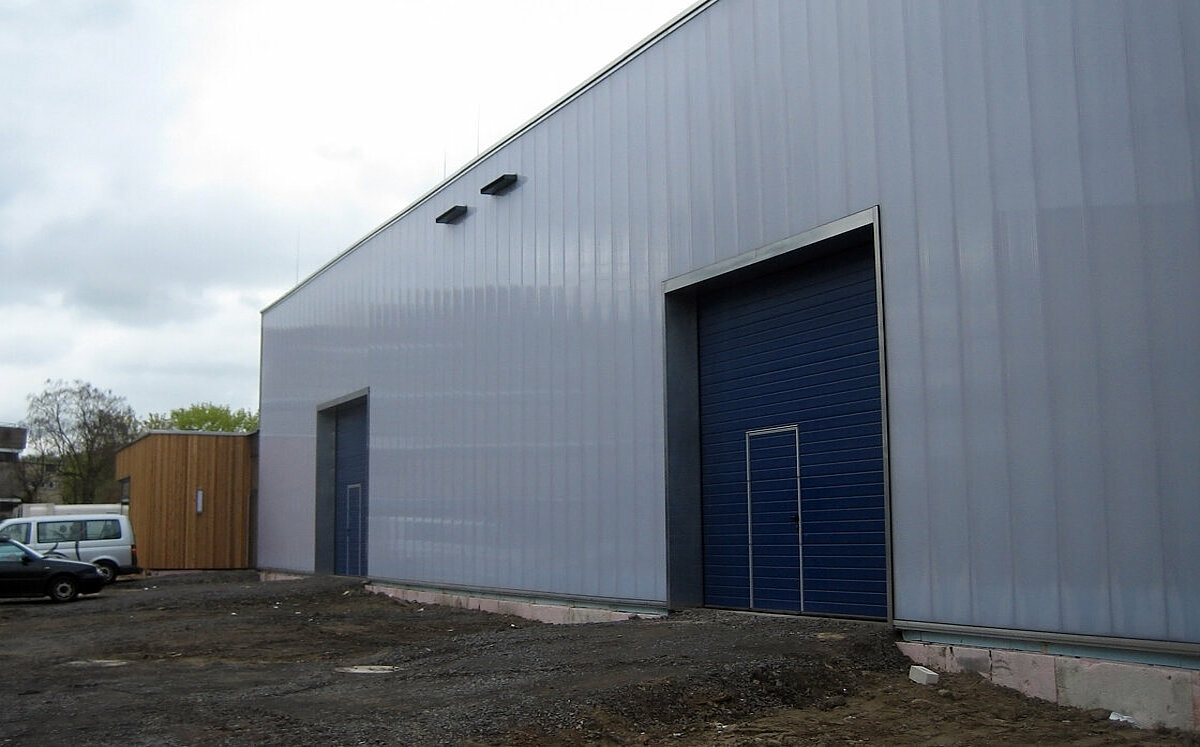 Im Rahmen einer Hochwasserschutzmaßnahme ist das ehemalige Gebäude der Berufsschule durch eine neue Bauhalle mit Nebengebäude ersetzt worden.